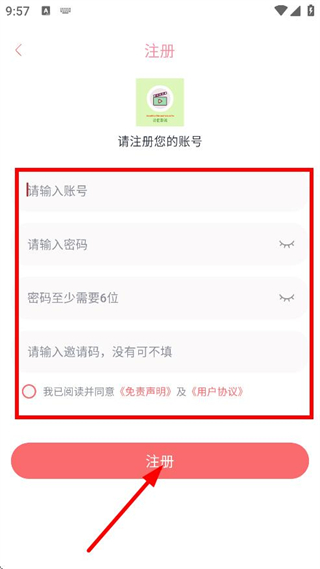 4、在注冊頁面,填寫賬號、密碼等信息,點擊注冊,完成注冊操作。