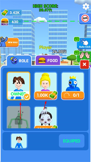 2、花費現(xiàn)金解鎖新角色,切換角色可獲得不同增益,為游戲進程增添助力。