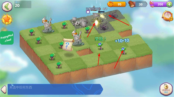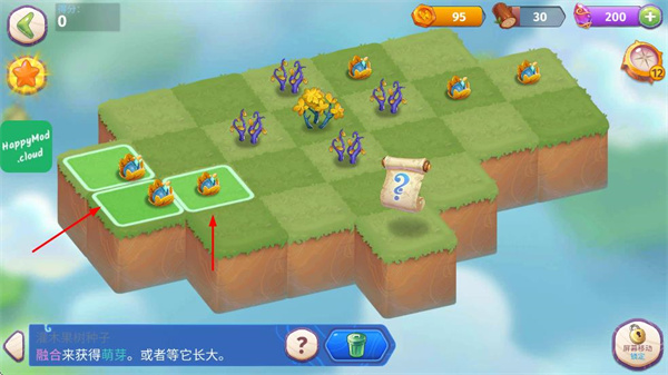 1、根據(jù)勝利條件生成指定植物,通過融合或等待植物長大,完成關(guān)卡目標(biāo),開啟花園經(jīng)營之旅。