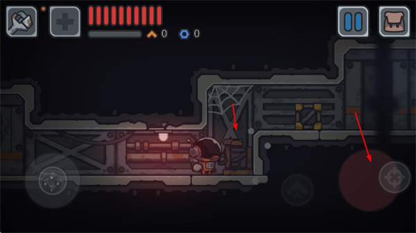 1、通過左側(cè)方向鍵控制角色移動(dòng),探索洞穴場景,這是開啟探險(xiǎn)之旅的關(guān)鍵操作。