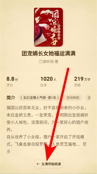 2、在小說(shuō)詳情頁(yè),左滑開(kāi)始閱讀。