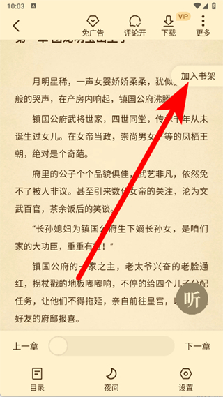 3、進(jìn)入閱讀頁(yè)面,點(diǎn)擊加入書架。