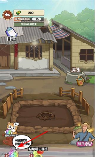 2、準(zhǔn)備種植操作,在農(nóng)場場景中,點擊提示區(qū)域,進入種子選擇界面,為種植作物做準(zhǔn)備。
