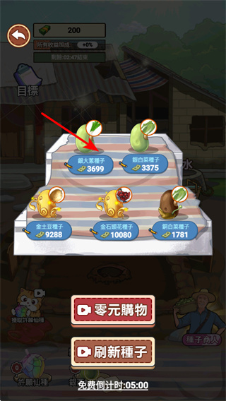 3、選擇種植種子,在種子選擇界面中,選擇合適的種子,確定要種植的作物類型。