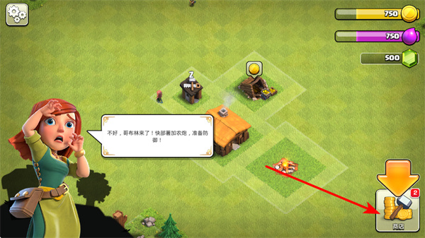 2、當(dāng)出現(xiàn)哥布林來襲的緊急事件時,點(diǎn)擊資源按鈕,準(zhǔn)備應(yīng)對哥布林的攻擊,保護(hù)自己的建筑和資源。