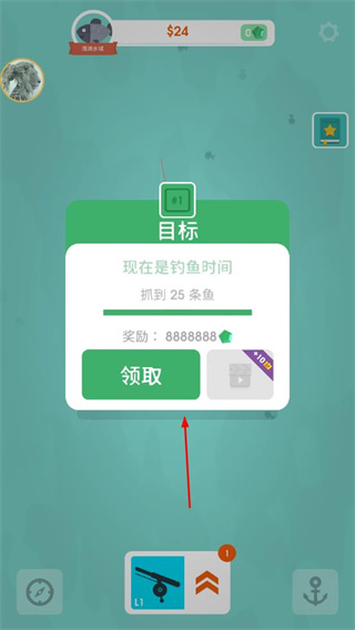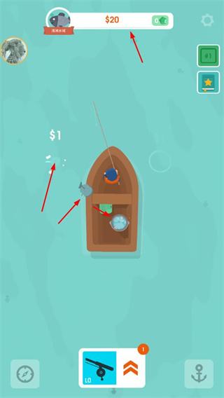 1、在船上釣魚獲取金錢,這是積累資源的關(guān)鍵操作,開啟釣魚經(jīng)營之旅。