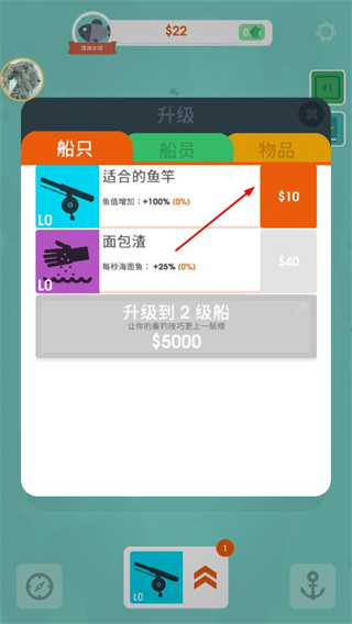 2、花費金錢升級漁具,提升釣魚效率,為經(jīng)營發(fā)展奠定基礎(chǔ)。