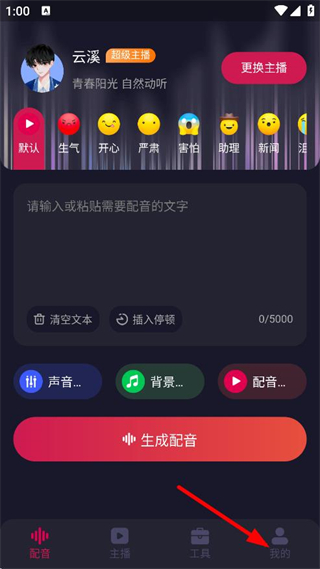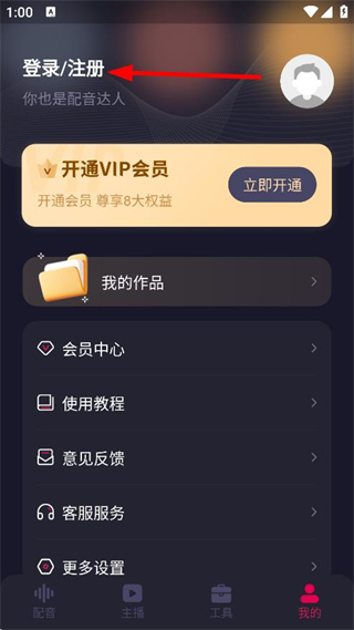 1、在配音APP主界面,點(diǎn)擊我的,進(jìn)入個(gè)人中心頁(yè)面。