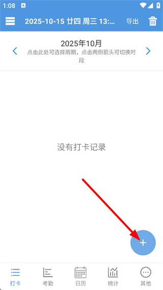 1、在打卡APP的打卡頁面,點擊右下角的+號,彈出打卡選項。