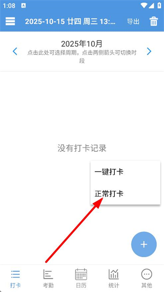 2、在彈出的打卡選項中,點擊正常打卡,進(jìn)入打卡設(shè)置頁面。