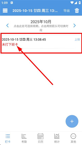 4、最后我們打卡完成后,頁面會顯示打卡記錄,未打下班卡。