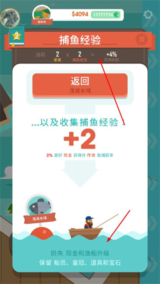 3、收集捕魚經(jīng)驗,提升經(jīng)驗等級獲取獎勵,同時了解升級時的損失與保留規(guī)則。