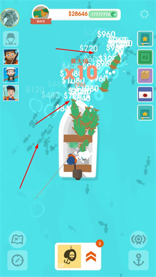 4、在水域中釣魚獲取高額金錢,利用倍數(shù)獎勵快速積累資源,持續(xù)推動釣魚經(jīng)營發(fā)展。