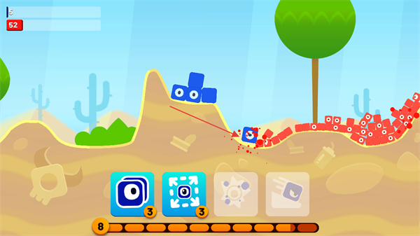 4、操控藍色方塊不斷分裂,攻擊紅色方塊,盡可能多地獲取分數(shù),朝著目標努力。