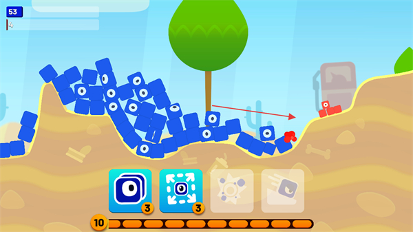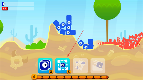 3、合理選擇和使用不同技能屏幕下方圖標,提升藍色方塊的分裂效果和攻擊能力。