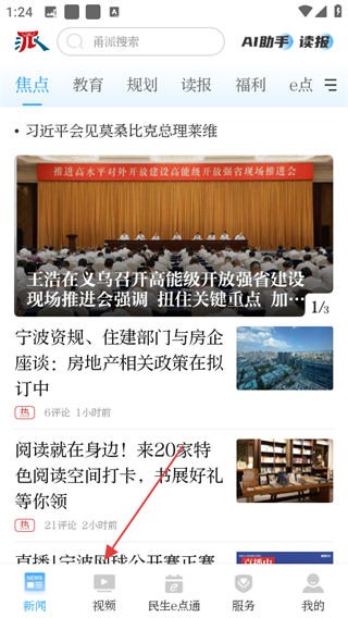 1、進入甬派首頁,點擊底部視頻,進入視頻頁面。