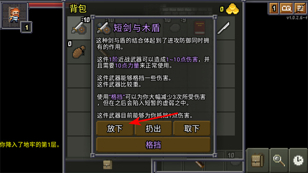 3、操作物品功能,針對背包中的物品,選擇放下等操作,管理物品的使用和攜帶,合理分配背包空間。