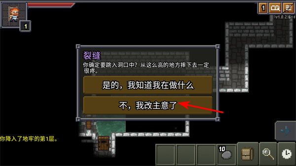 4、選擇劇情分支,面對是否跳入洞口的劇情抉擇時,選擇“不,我改主意了”等選項,決定行動方向。