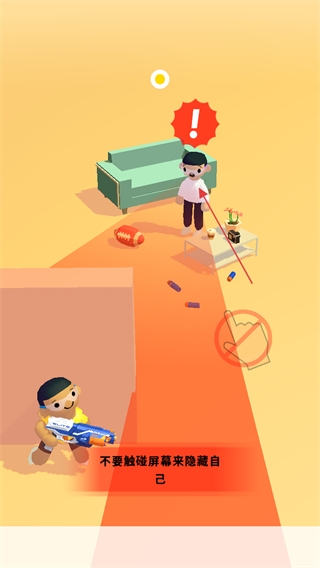 2、當敵人的視線掃過來,出現(xiàn)紅色感嘆號提示時,不要觸碰屏幕,讓角色隱藏,避免被發(fā)現(xiàn)。