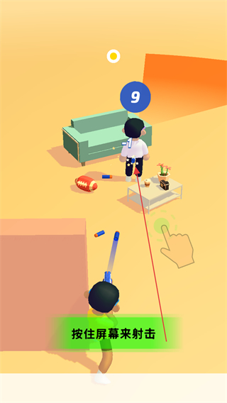 3、待敵人視線移開,再次按住屏幕射擊,降低敵人頭頂?shù)臄?shù)字,直到擊敗敵人。