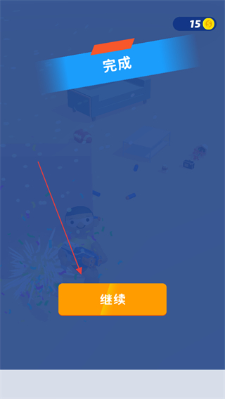4、成功擊敗敵人后,出現(xiàn)完成提示,點擊繼續(xù)按鈕,進入下一個關(guān)卡。