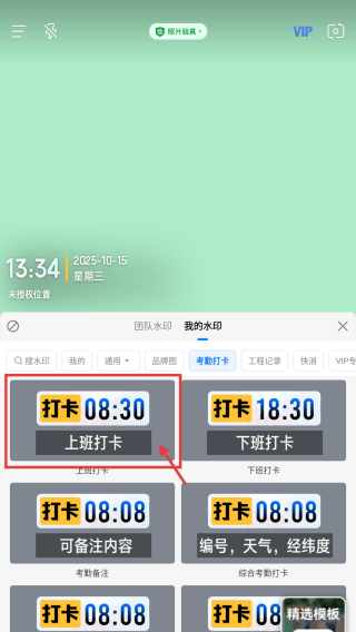 2、在水印模板頁(yè)面,選擇考勤打卡分類(lèi),瀏覽打卡模板列表。