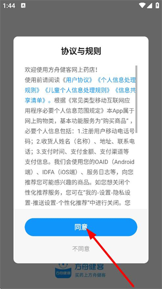 1、在協(xié)議與規(guī)則彈窗中,點擊同意,進入APP主界面。
