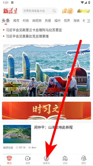 1、打開新福建APP,點(diǎn)擊底下中間福建號(hào)。