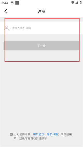 4、在注冊(cè)頁(yè)面,輸入手機(jī)號(hào)碼,點(diǎn)擊下一步,完成注冊(cè)操作。