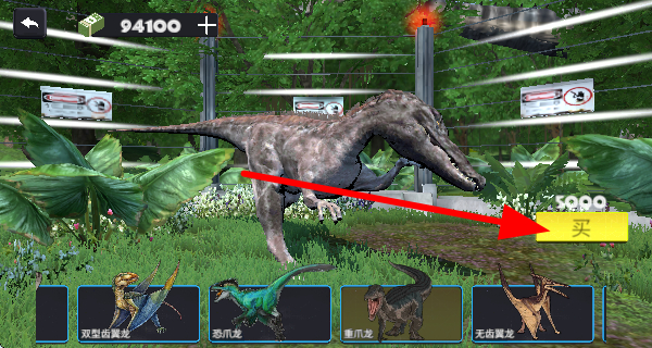 2、進(jìn)入商店后,用獲取的鈔票購(gòu)買選擇不同種類的恐龍,不同恐龍有不同的屬性和能力,助力游戲。