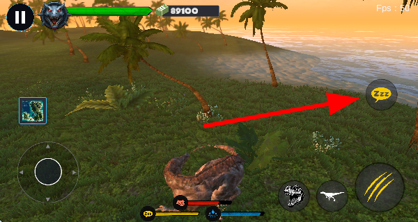 3、到了夜晚,操控恐龍進(jìn)行休息,恢復(fù)狀態(tài),為后續(xù)在場(chǎng)景中的活動(dòng)做好準(zhǔn)備,保障恐龍的活力。