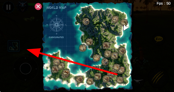 4、查看大地圖,了解游戲世界的整體布局和各個(gè)區(qū)域的分布,方便規(guī)劃恐龍的行動(dòng)路線,探索世界。
