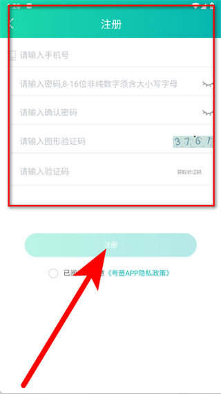 4、填寫手機(jī)號、密碼、圖形驗(yàn)證碼、驗(yàn)證碼等信息,勾選協(xié)議后點(diǎn)擊注冊。