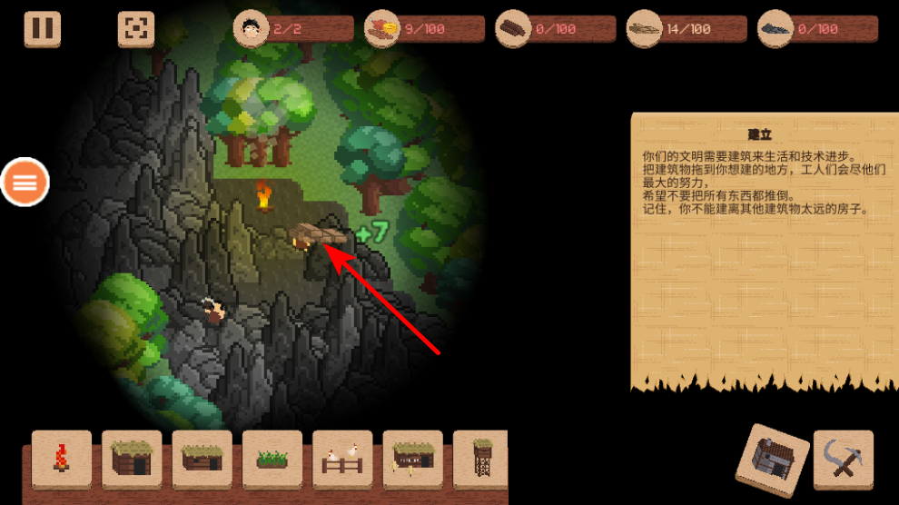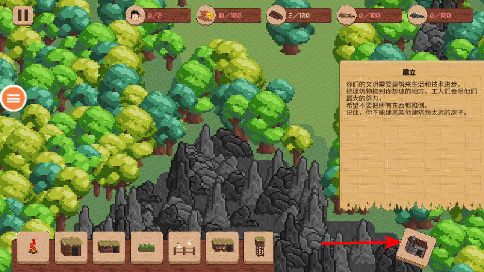4、建設建筑結(jié)構(gòu),將建筑拖放到采集好的資源區(qū)域或合適的位置,完成建筑的建設,提升居民的生活發(fā)展條件。