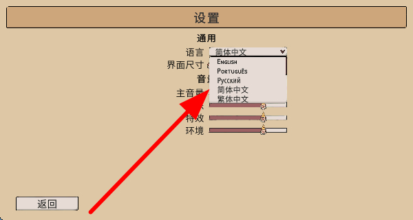 4、進入設置界面,找到語言選項,選擇簡體中文,將游戲語言設置為中文,更好地理解游戲內容。