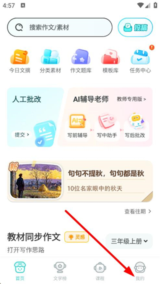筆神作文是一款專門為青少年打造的寫作興趣社區(qū)工具,用戶選擇所在年級后,工具會提供對應(yīng)年級所需的寫作技能、相關(guān)素材與作文,每天更新新的滿分作文,還有堅(jiān)持、愛國、自律等分類素材,背誦后可用于寫作,還能曬文字作品、通過寫作交流中國傳統(tǒng)文化,感受文字之美。