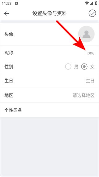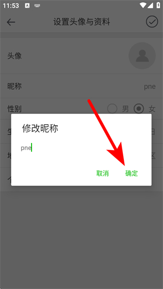 3、在設(shè)置頭像與資料頁(yè)面,點(diǎn)擊昵稱會(huì)彈出修改昵稱窗口。