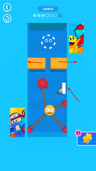 2、進入Level4關卡,操控肢體推開黃色障礙物,同時避開危險道具,為到達目標區(qū)域奠定基礎。