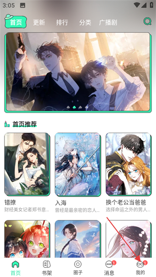 1、進入青漫,在首頁點擊底部我的,進入個人頁面。