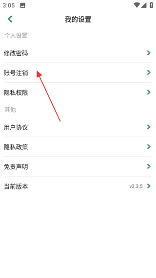 3、在我的設(shè)置頁面,點擊賬號注銷,進入賬號注銷提示頁面。