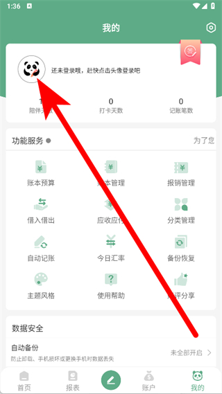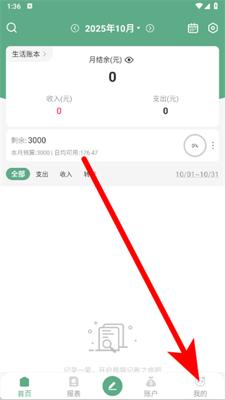 1、打開熊貓記賬,進入主界面后,點擊底部導(dǎo)航欄中的我的選項。