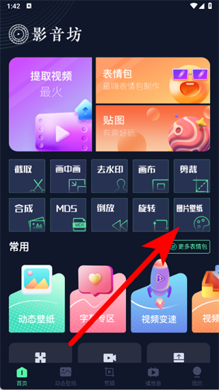 1、打開影音坊,在首頁,點(diǎn)擊圖片壁紙功能。