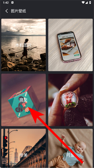 2、進(jìn)入圖片壁紙頁面后,選擇搞笑分類。