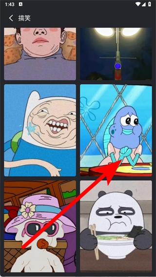 3、在搞笑分類里,點(diǎn)擊選中想要的圖片素材。