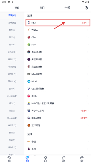 3、在賽事列表中,點(diǎn)擊NBA板塊,進(jìn)入NBA賽事詳情頁(yè)。