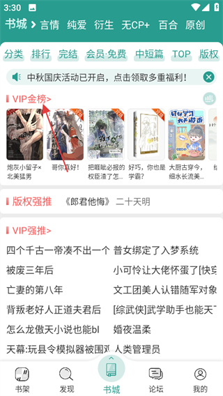 1、進(jìn)入晉江小說(shuō)閱讀,點(diǎn)擊VIP金榜,進(jìn)入VIP金榜頁(yè)面。