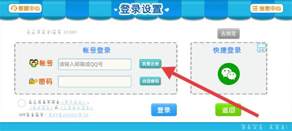 3、若未注冊賬號,在登錄設(shè)置頁面點擊我要注冊,進(jìn)入新用戶注冊頁面。