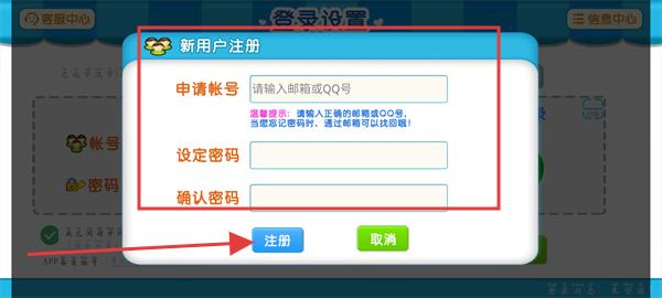 4、在新用戶注冊頁面,輸入郵箱或QQ號,設(shè)定并確認(rèn)密碼,點擊注冊,完成賬號注冊。