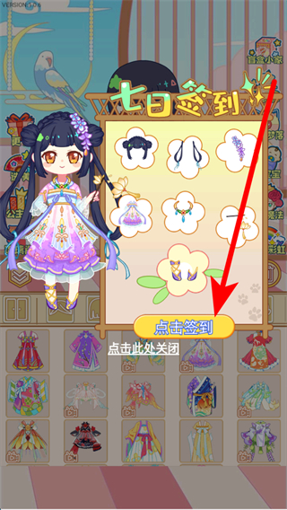 1、參與七日簽到活動,點擊簽到按鈕,可領頭飾、服飾等裝扮獎勵,豐富角色裝扮選擇。