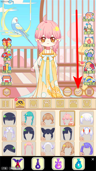 2、在裝扮界面,從眾多發(fā)型、服飾等選項中挑選,搭配好后點擊對勾確認,打造心儀古風形象,展現(xiàn)創(chuàng)意與審美。